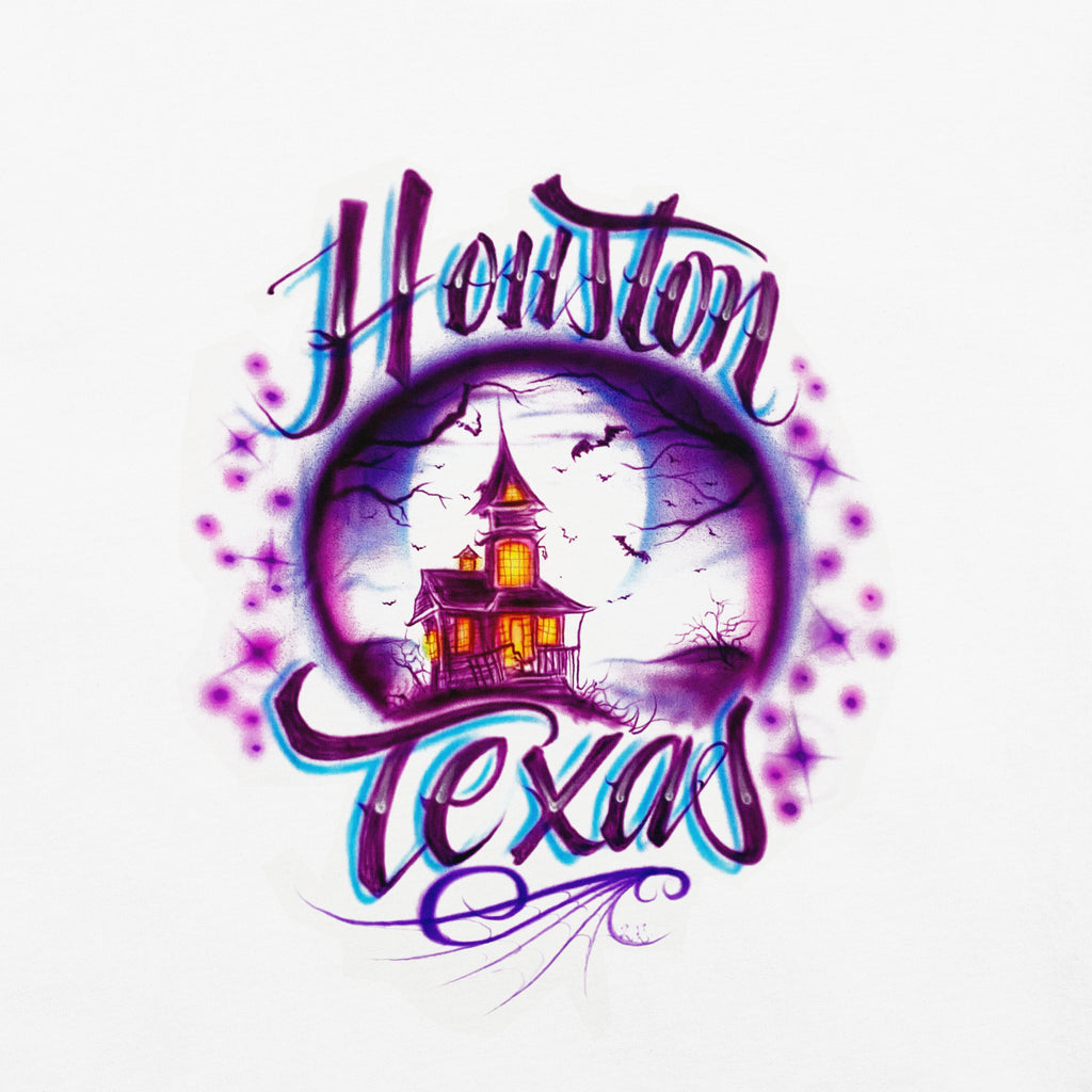 In anticipation of the opening of Mario Ayala: Seven Vans on November 14th, we are thrilled to unveil an exclusive tee designed by Mario. This tee celebrates Houston and the vibrant Halloween spirit.